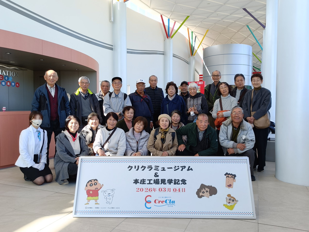 児玉教育会館近くのR254に面して建っている非常にアピール力のある、クリクラ本庄工場へ12期会24名で見学に出かけました。