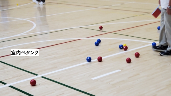 ご存じの方も多いと思いますが、ルールは屋外ペタンク同様、ビュットと呼ばれる目標球にボールを投げ合い、より近づけることで得点を競うゲームです。