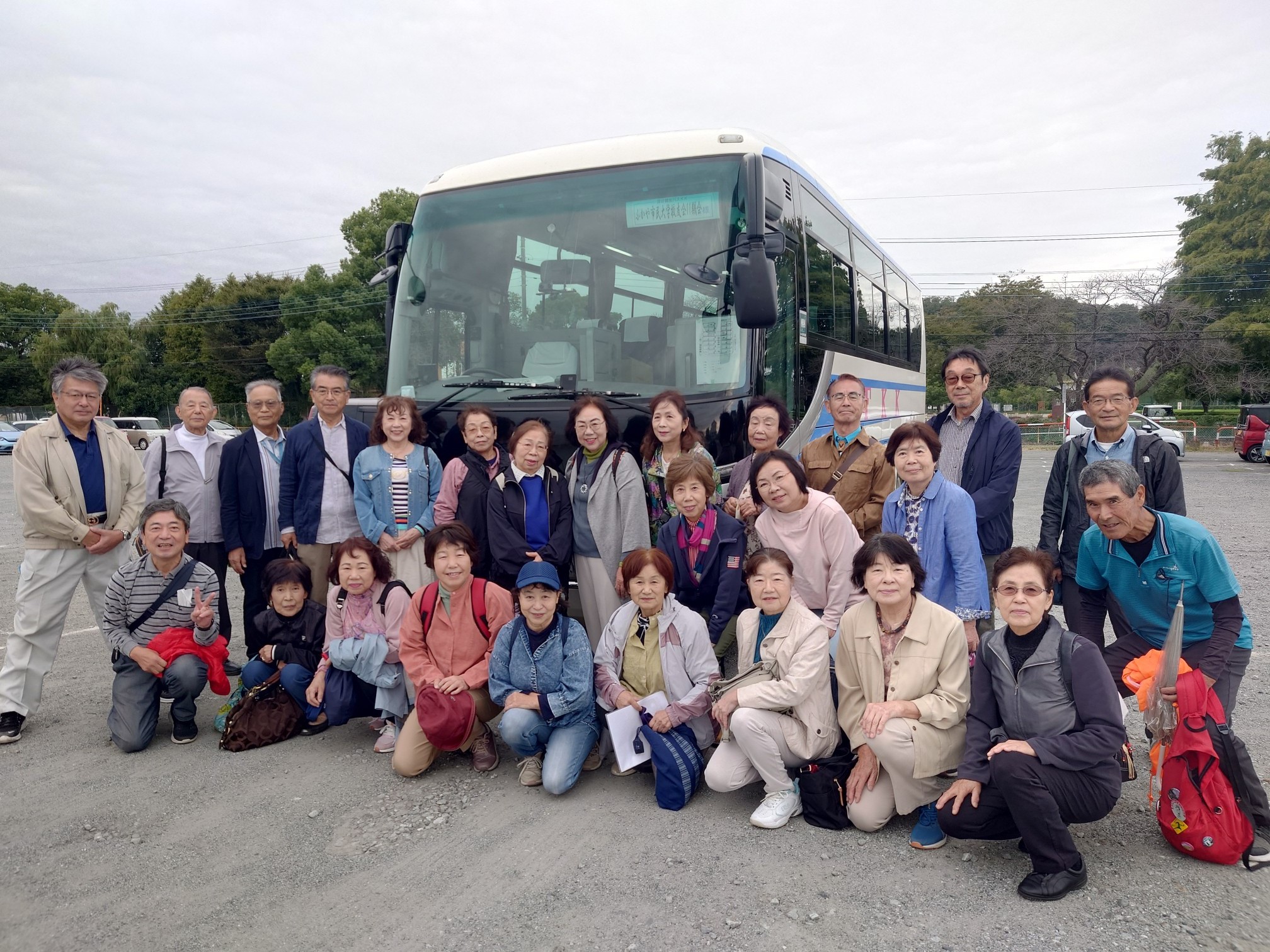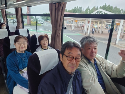 令和7年10月14日(火)、長野へバス視察旅行に行ってきました。26名が参加しました。当日は、今にも降り出しそうな曇り空。深谷観光のバスで出発です。