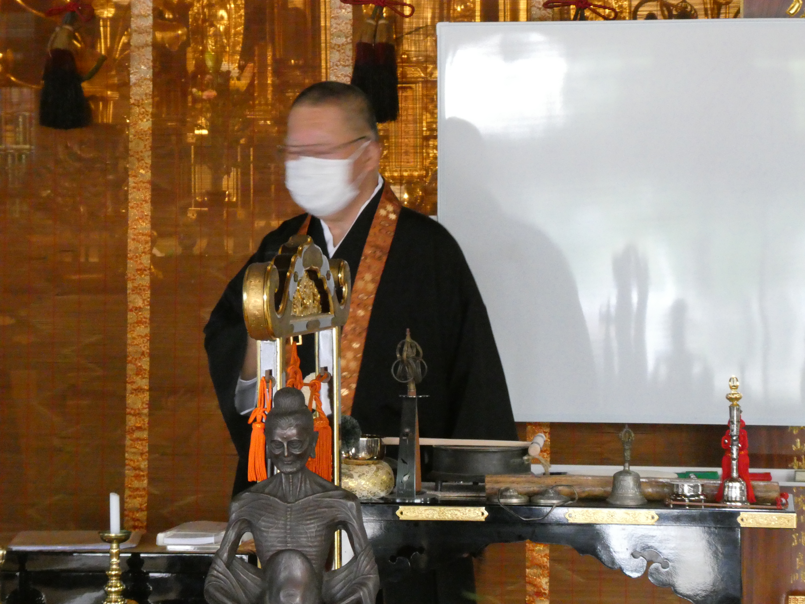 吉祥寺のみの27名は交代に瀧川住職の仏具の説明を聞きました。