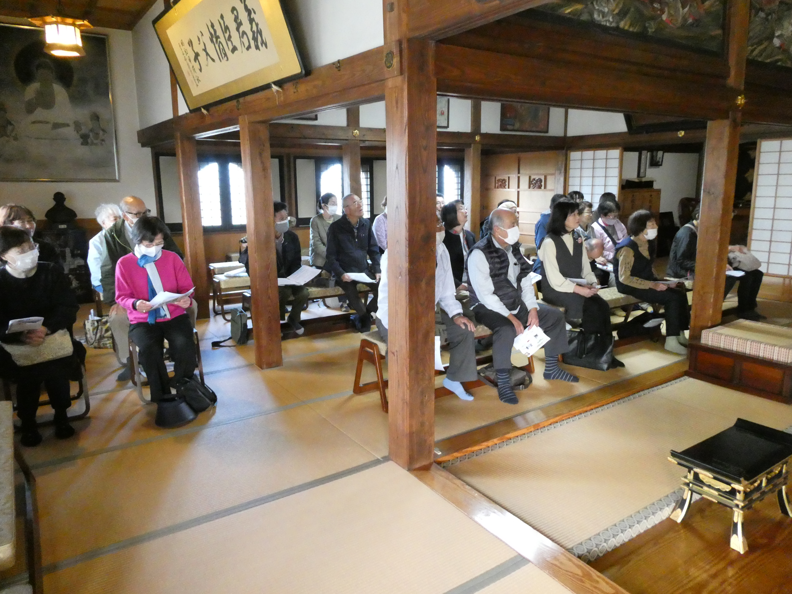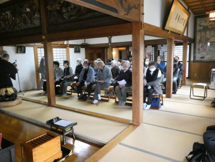 9時に吉祥寺に全員が集合し、野元会長の挨拶から始まり、吉祥寺の瀧川住職の講話を聴きました。