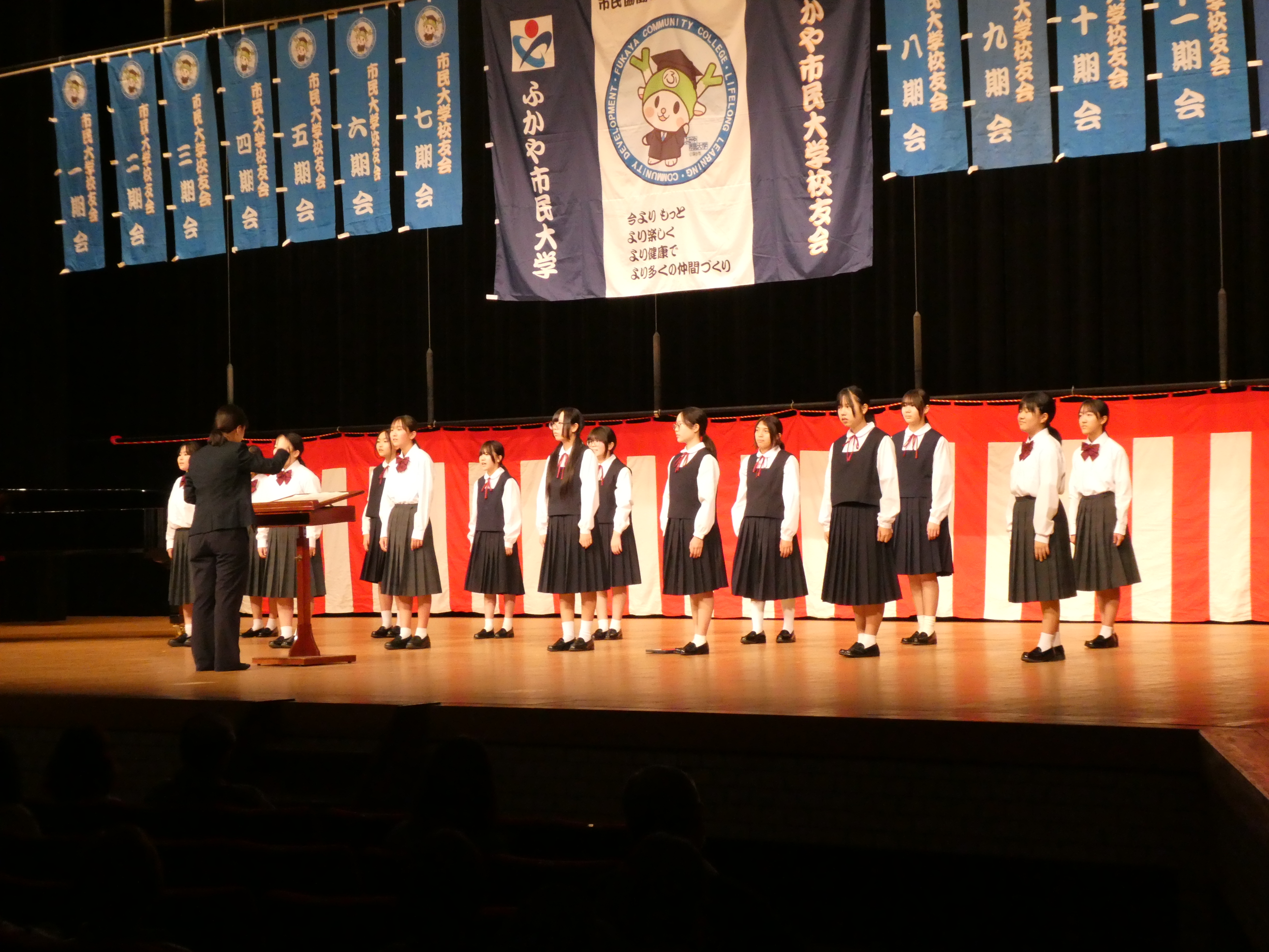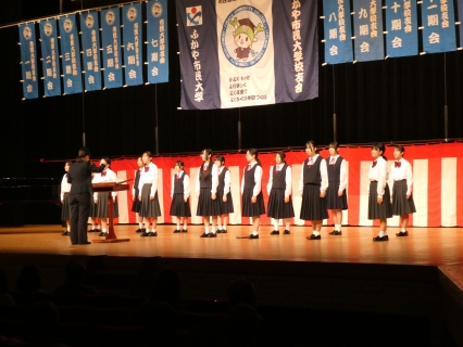 獅子舞の次は、幡羅中学校音楽部のコーラスです、3年生は部活動を卒業し、1,2年生が参加していただきました。