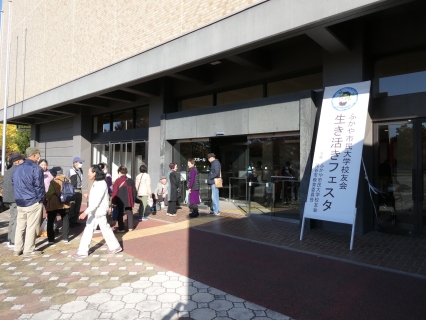 当日は9時30分開場のところ、9時前から入口前には行列ができていました。その為、9時30分少し前に開場しました。校友会としては、1年で一番大きな催し物ですので、スタッフ一同、気合を込めての受付開始です。
