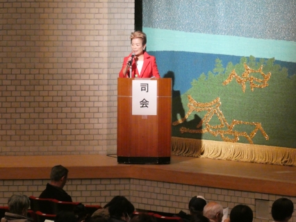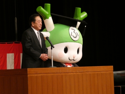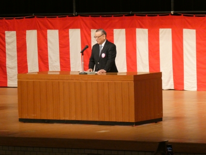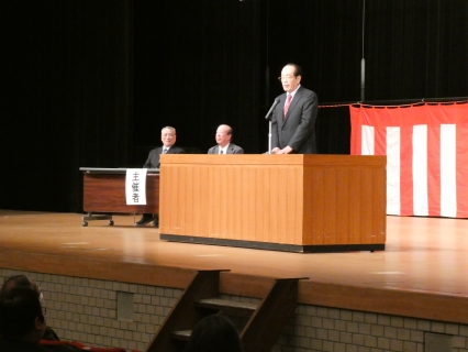 その後、2名のご来賓から祝辞のおことばを頂きました。最初に小島深谷市長、次に地域振興財団坂田理事長。小島市長からは最近の深谷の話題として、ふっかちゃんのテレビコマーシャル出演、渋沢栄一、敬三の銅像除幕式についてお話を頂きました。
