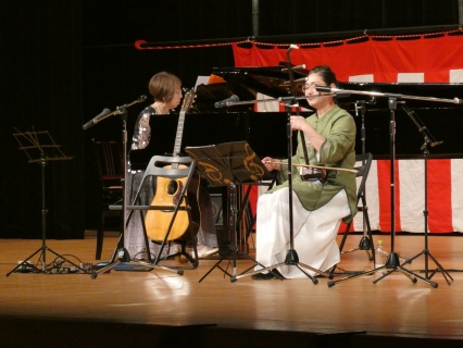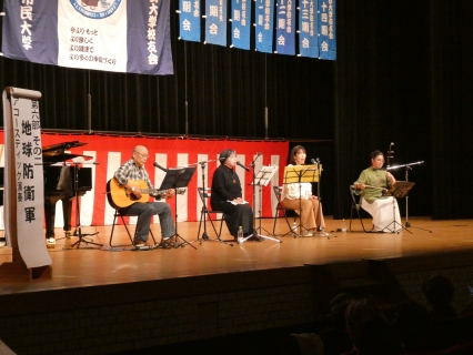 最後は二胡と地球防衛軍のコラボです。校友会会員なら誰でも知っている和製ポップスをボーカルとアコースティックギターで奏でて、和やかな雰囲気が文化会館大ホール全体を包みます。