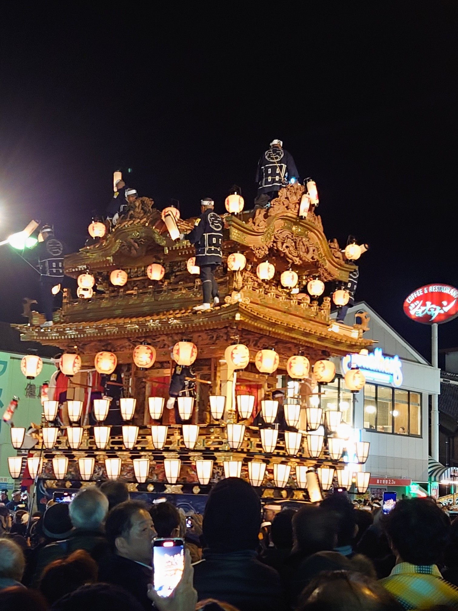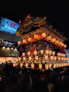 モードです。屋台ばやしの太鼓のリズムと、絢爛豪華な屋台をまじかで見学しました。ものすごい迫力です。十分楽しんだ後、駅に戻り、イチローズモルトとしゃくし菜を買い帰路につきました。(記 遠藤)