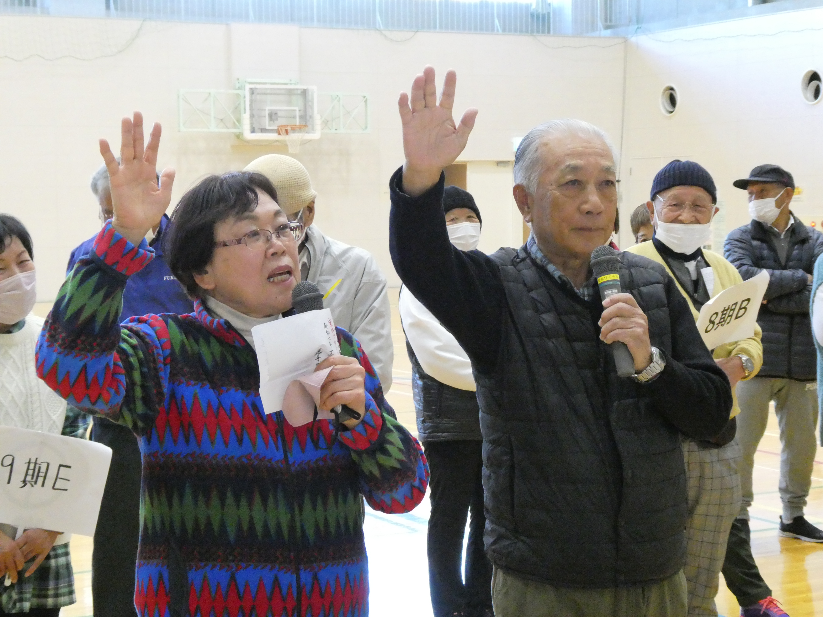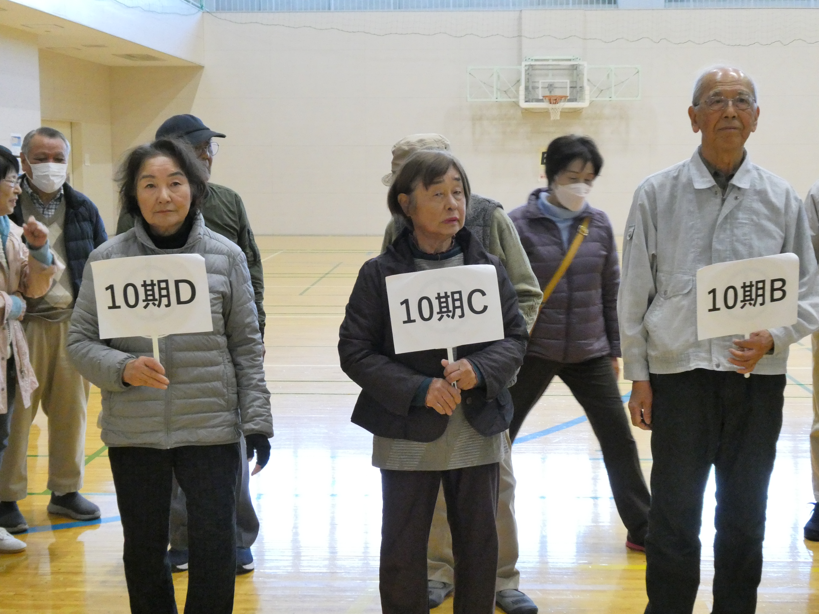 開会式では、6期会加藤会長の開会宣言、10期会の高橋会長の組み合わせ・ルール説明があり、その後、2期会大澤さんと10期会今井さんによる開会宣言、10期澤田さんの指導による準備体操を行い、親善大会が開始されました。