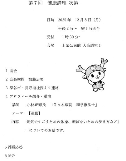 深谷市民大学校友会・6期会主催 第7回 健康講座