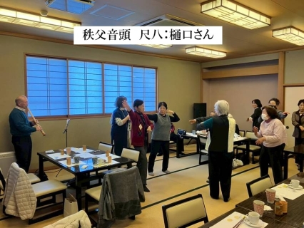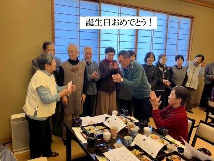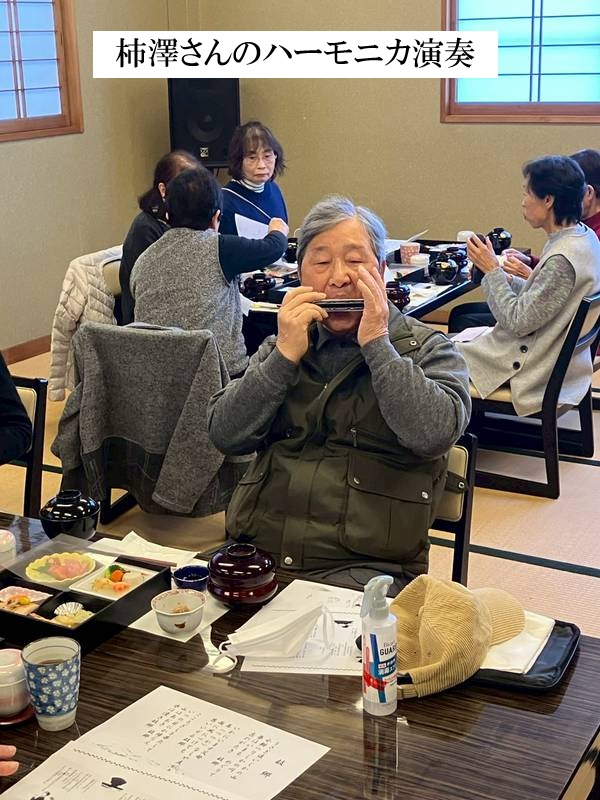 誕生(9月10月11月12月生)した方々12名のお祝いを始まりに宴会は進んで行きました。ハーモニカ演奏・ハープ演奏・鼻笛演奏・ヨサホイ節・色々な歌・尺八伴奏付秩父音頭等多彩な演芸の披露がありました。