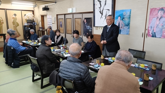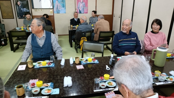 12期会では、2026年1月10日に市内の割烹「楓」にて新年会を開催しました。冒頭、飯島会長より、新年のご挨拶と2026年度の12期会での活動活性化に対する方針的お話があり、引き続き(お酒では無くて)お茶ケでの乾杯で昼食会をスタートさせました。